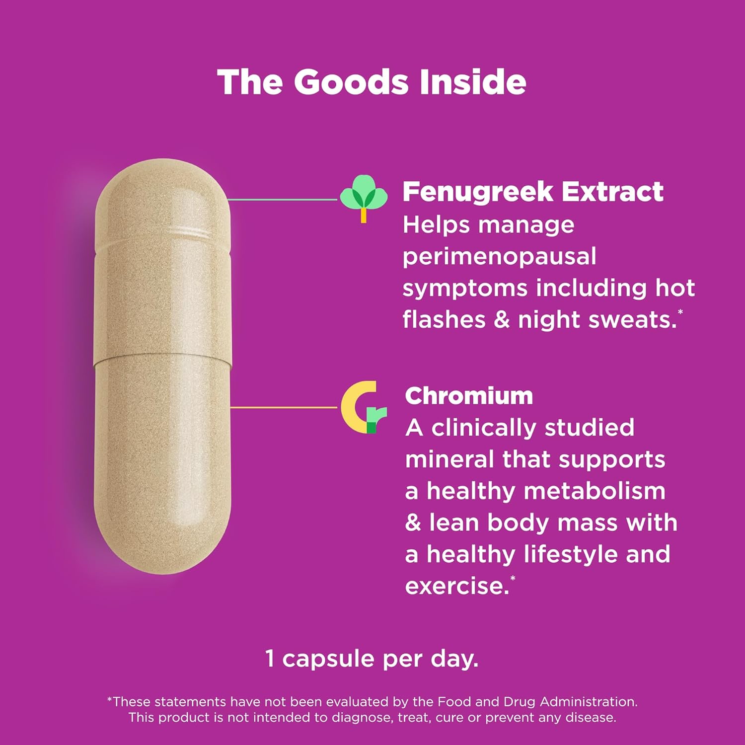 - El metabolismo de su cuerpo puede cambiar durante la perimenopausia. Hemos incluido cromo clínicamente estudiado porque apoya un metabolismo saludable y masa corporal magra con un estilo de vida saludable y ejercicio
