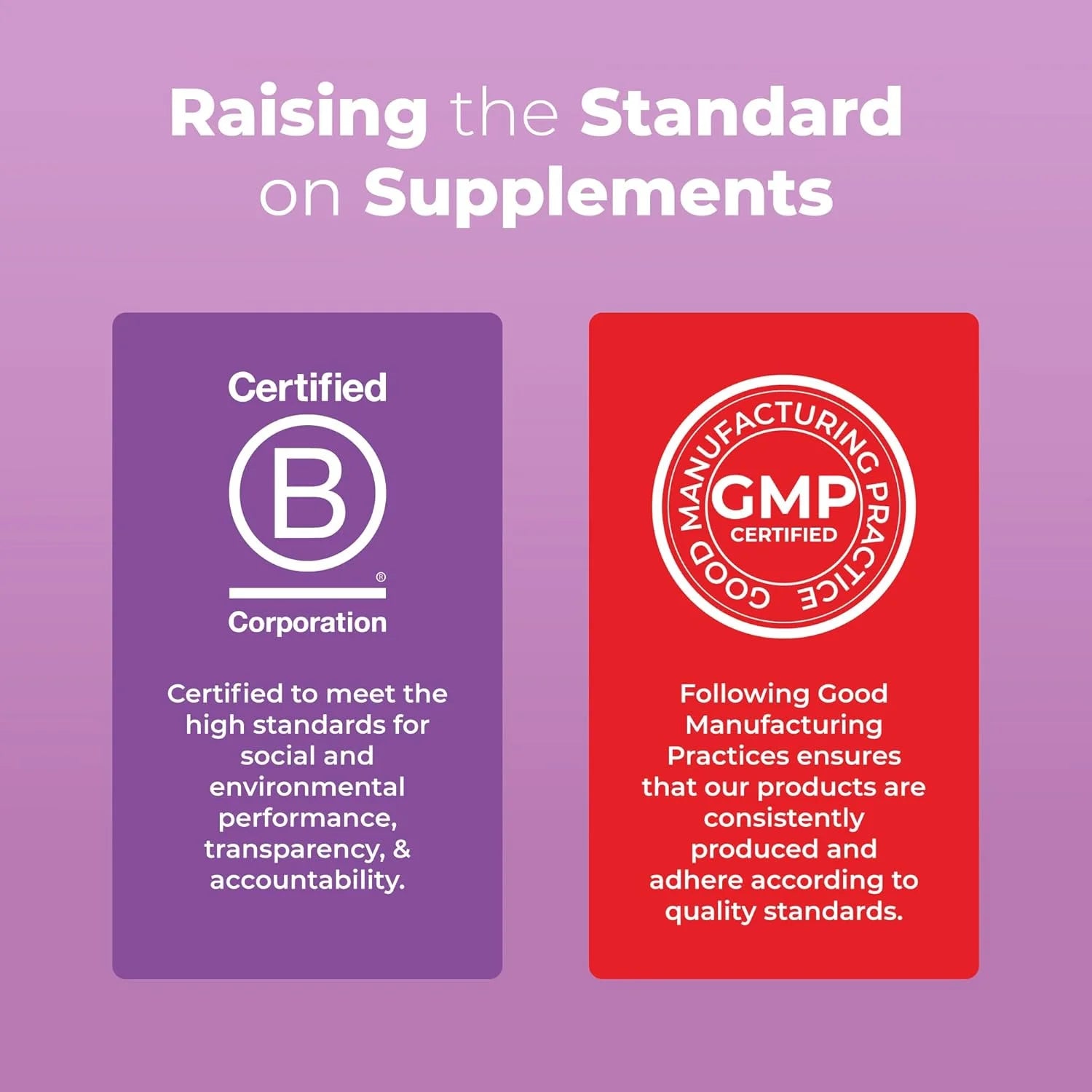 Sin OMG, veganas, a base de pectina, sin gelatina, sin colores artificiales, sin lácteos, sin nueces, sin gluten, sin soja, fabricadas en una instalación GMP. Certificado B Corp.