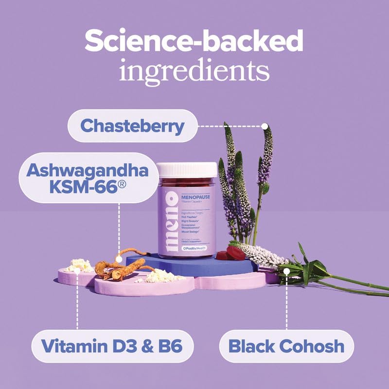MENO Menopause Gummy Vitamins de O Positiv Health ofrece un suplemento diario para la menopausia sin hormonas para mujer diseñado para aliviar proactivamente los síntomas de la menopausia como: