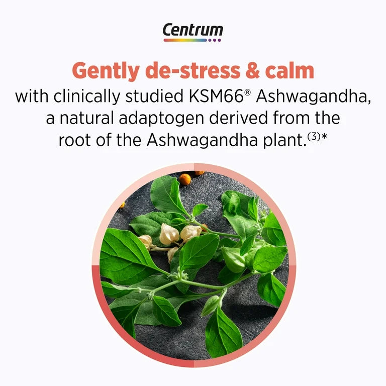 - KSM-66® Ashwagandha, un adaptógeno natural, ayuda a desestresarse suavemente y calmar los sentimientos ocasionales de ansiedad y estrés