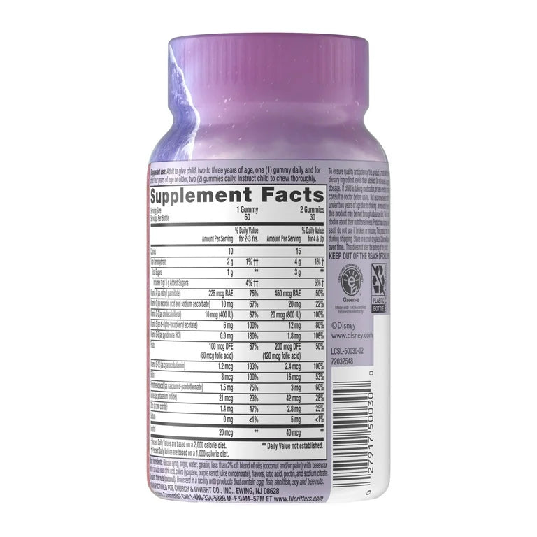 - El multivitamínico diario L'il Critters™ Frozen tiene los sabores y la diversión que a los niños les encantan sin los extras que no quieres: sin edulcorantes artificiales, sin jarabe de maíz de alta fructosa, sin colorantes sintéticos (FD&C), sin lácteos ni gluten.