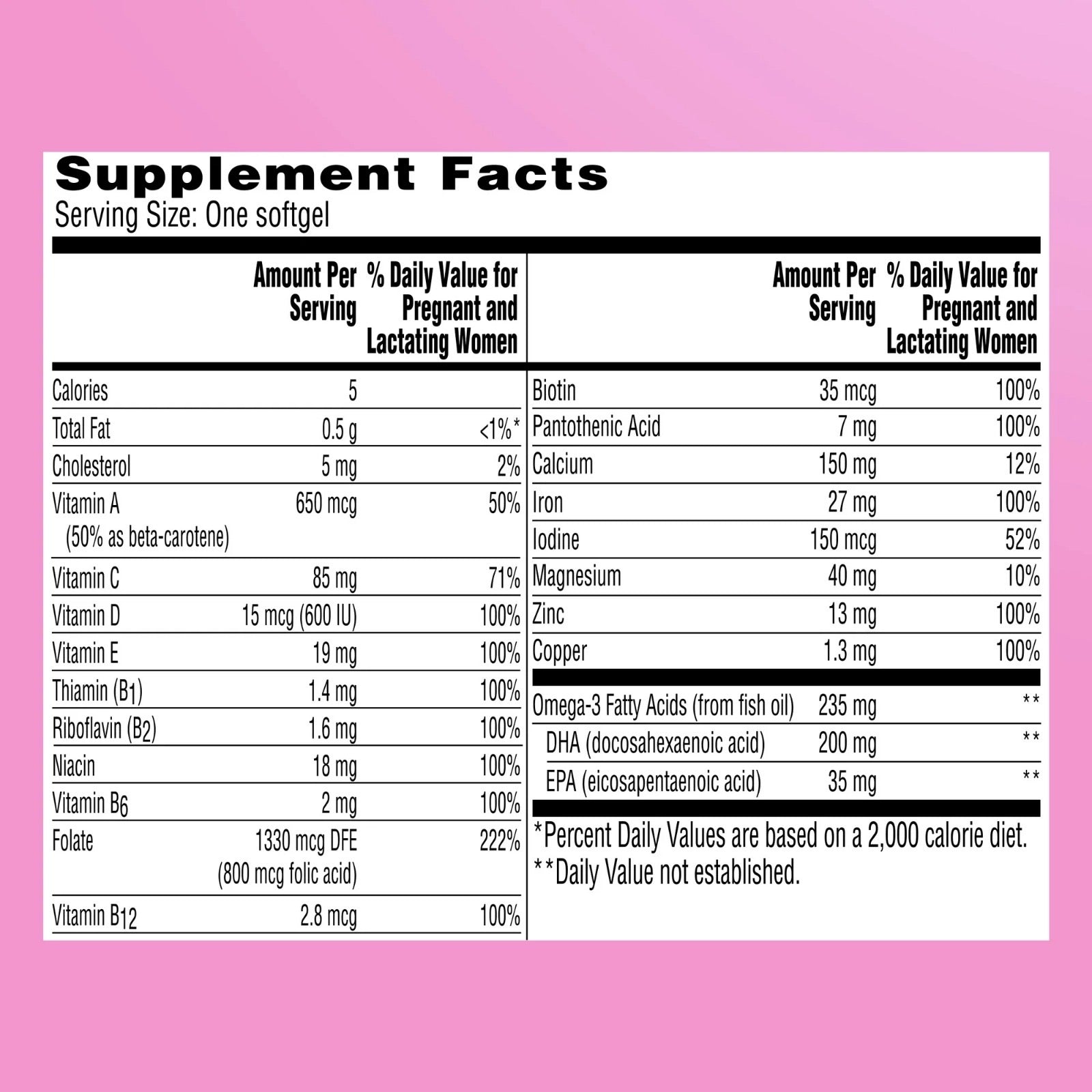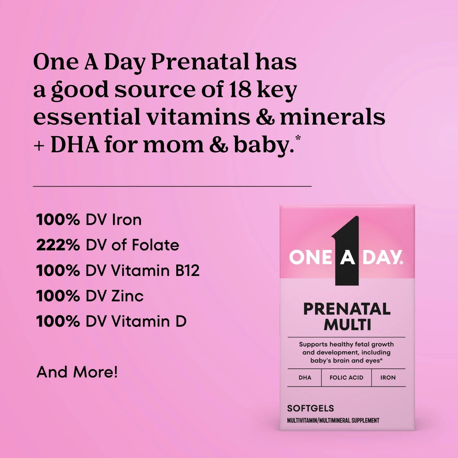 - Es mejor usar One A Day®️ Women’s Prenatal 1 de manera constante durante el embarazo y mientras se está amamantando, ya que el DHA pasa de la madre al bebé a través de la leche materna.