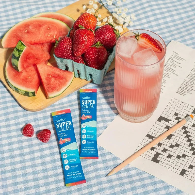 REFRESCAR, RELAJAR, REFOCAR: Nello's SuperCalm le ayuda a disfrutar sin esfuerzo de la relajación y la concentración en cualquier momento y lugar. Saboree los vibrantes sabores de la limonada de frambuesa en cómodos paquetes para llevar o en el bote multi-servicio mientras promueve la vitalidad y el equilibrio de su cuerpo.