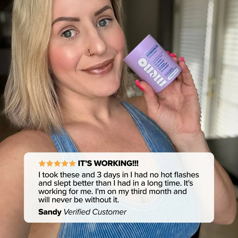 MENO Menopause Vitamin Capsules de O Positiv Health ofrece un suplemento diario para la menopausia sin hormonas para mujeres diseñado para aliviar proactivamente los síntomas de la menopausia como: